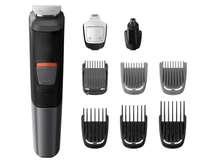 Kreieren Sie mit dem vielseitigen Trimmer und seinen 9 Aufsätzen zum Stylen von Bart und Haaren Ihren eigenen Look. Seine DualCut-Klingen liefern erstklassige Präzision, während der rutschfeste Griff aus Gummi für mehr Komfort und Sicherheit sorgt.