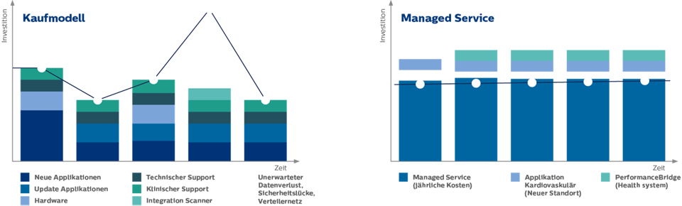 Wir bei Philips bieten eine solche Lösung beispielsweise mit dem Programm IntelliSpace Enterprise Edition (ISEE) an. Die Plattform kombiniert innovative Softwarelösungen mit einem umfassenden Managed-Service-Angebot. Durch diesen ganzheitlichen Ansatz profitieren Krankenhäuser von den klinischen Systemen, hoher Leistungsfähigkeit, niedrigen Initialkosten und einer garantierten Verfügbarkeit. All diese Leistungen werden mit ISEE in einem einzigen Vertrag zusammengeführt. Für den Service steht eine einheitliche Servicehotline mit einem festen Ansprechpartner zur Verfügung. ISEE umfasst zahlreiche klinische Anwendungen, die sich der Kunde je nach Bedarf zusammenstellen kann.